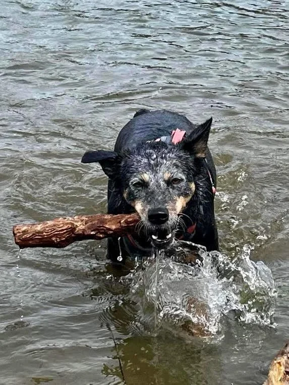 At a very young age, Tash was attacked by an adult dog that snuck into her nursery. The damage was so bad that she could only get around by scooting on her belly. The vet said that if Tash was not able to regain the use of her right-front leg within a few weeks, the only option would be to amputate. Tash responded very quickly to adjustments and a small splint that Dr. Katie fashioned for her. Tash is now an active, adult dog and spends her days hiking and paddle boarding with her owner around Lake Tahoe.